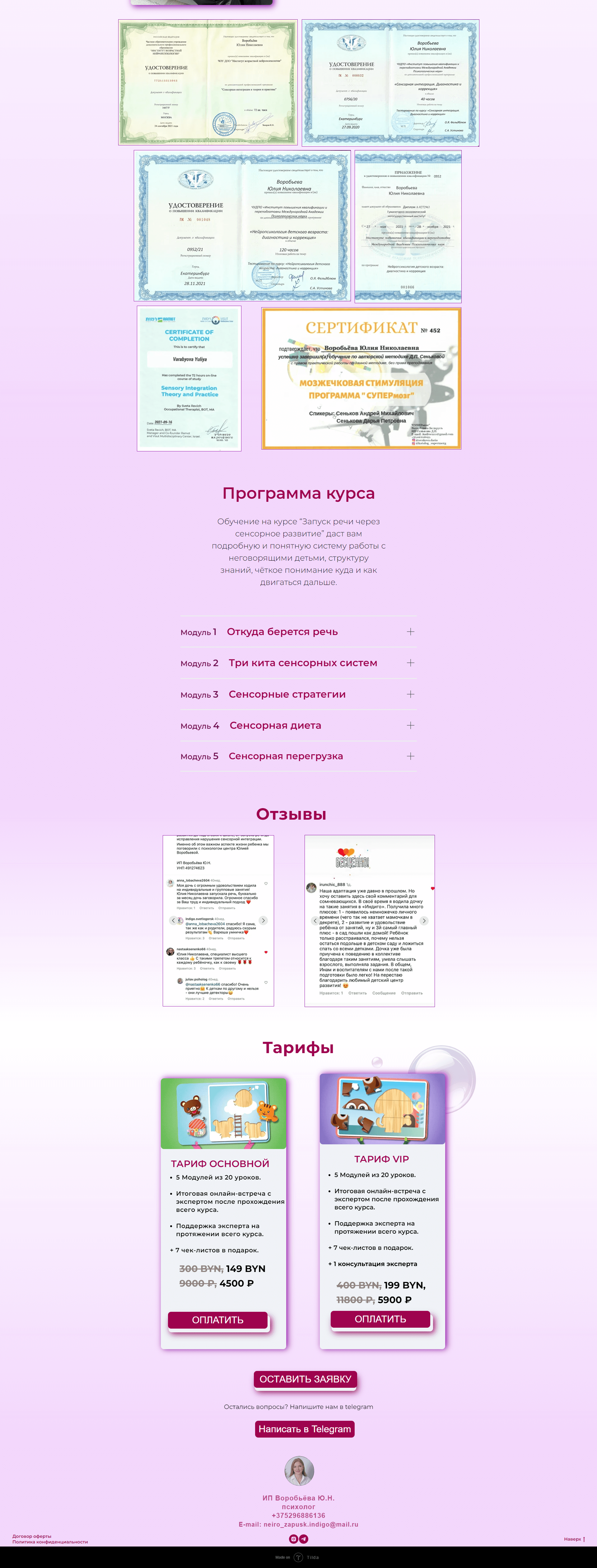 Подключение домена, платежных систем, оформление тренингов, настройка процессов, партнерская программа, создание групп, подключение базы и т.д.