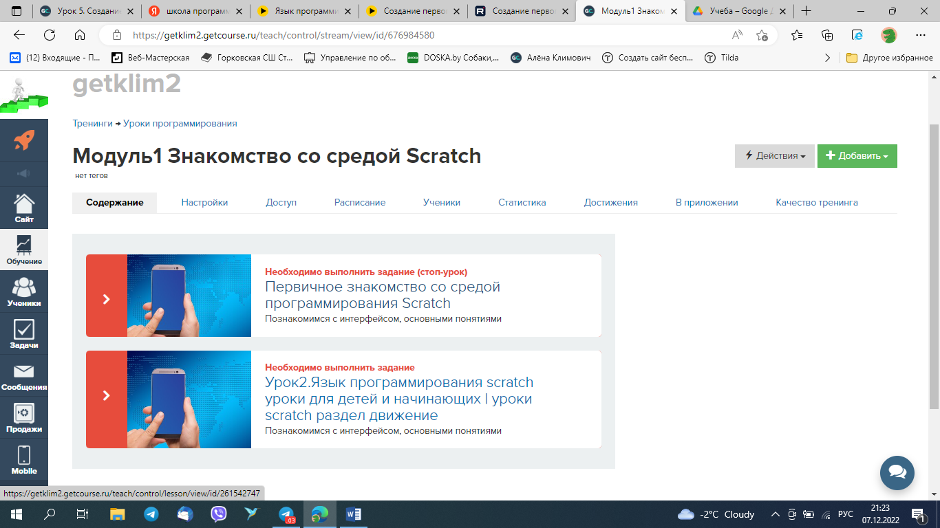 Формирование уроков в тренинг, упаковка курса на геткурс, дизайн и оформление уроков