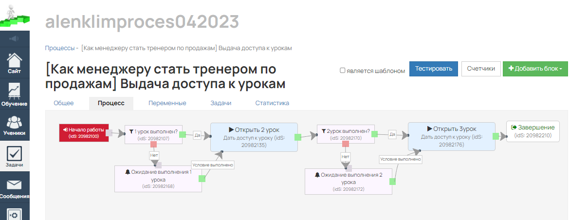 Настройка тренингов и уроков